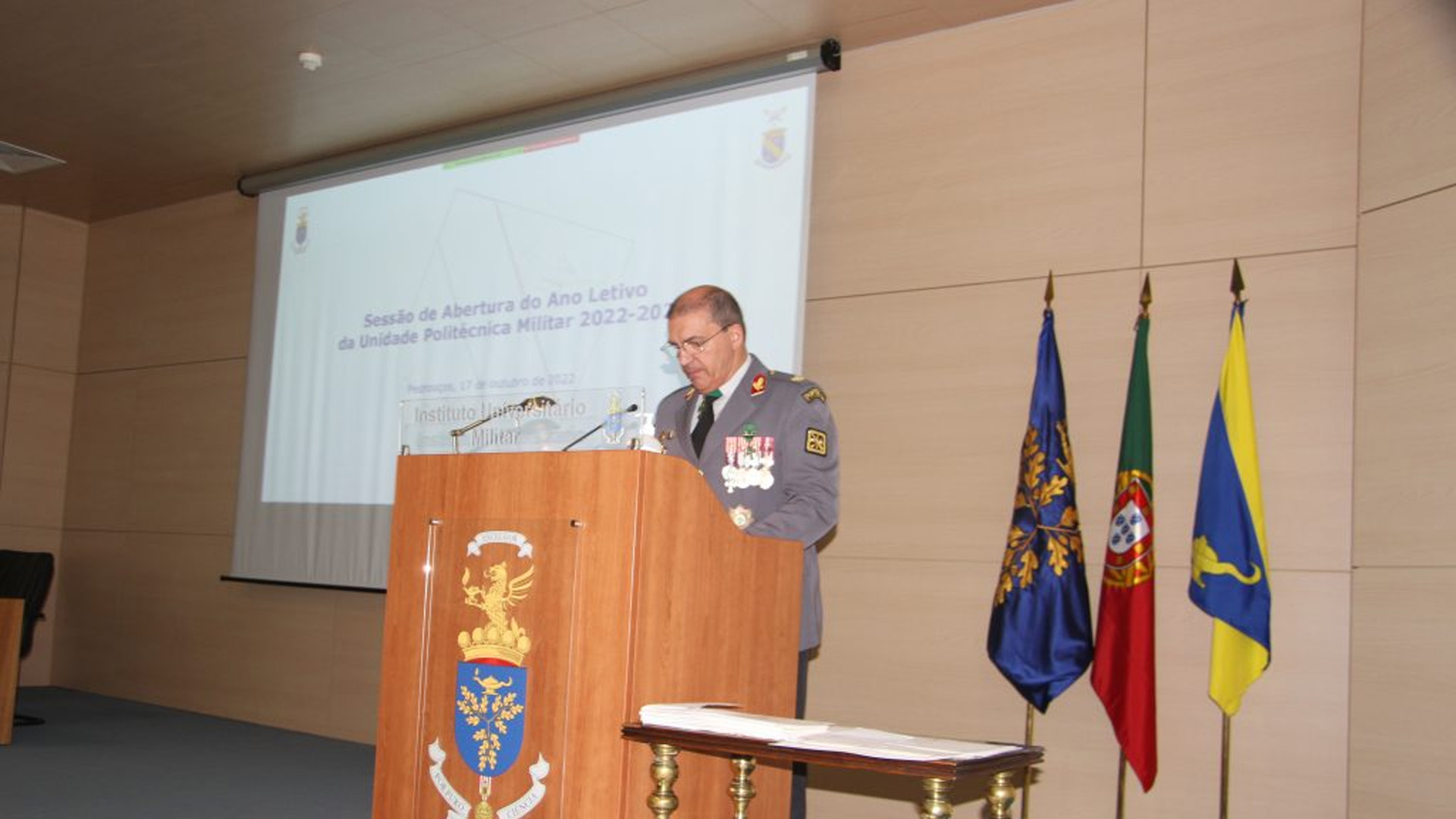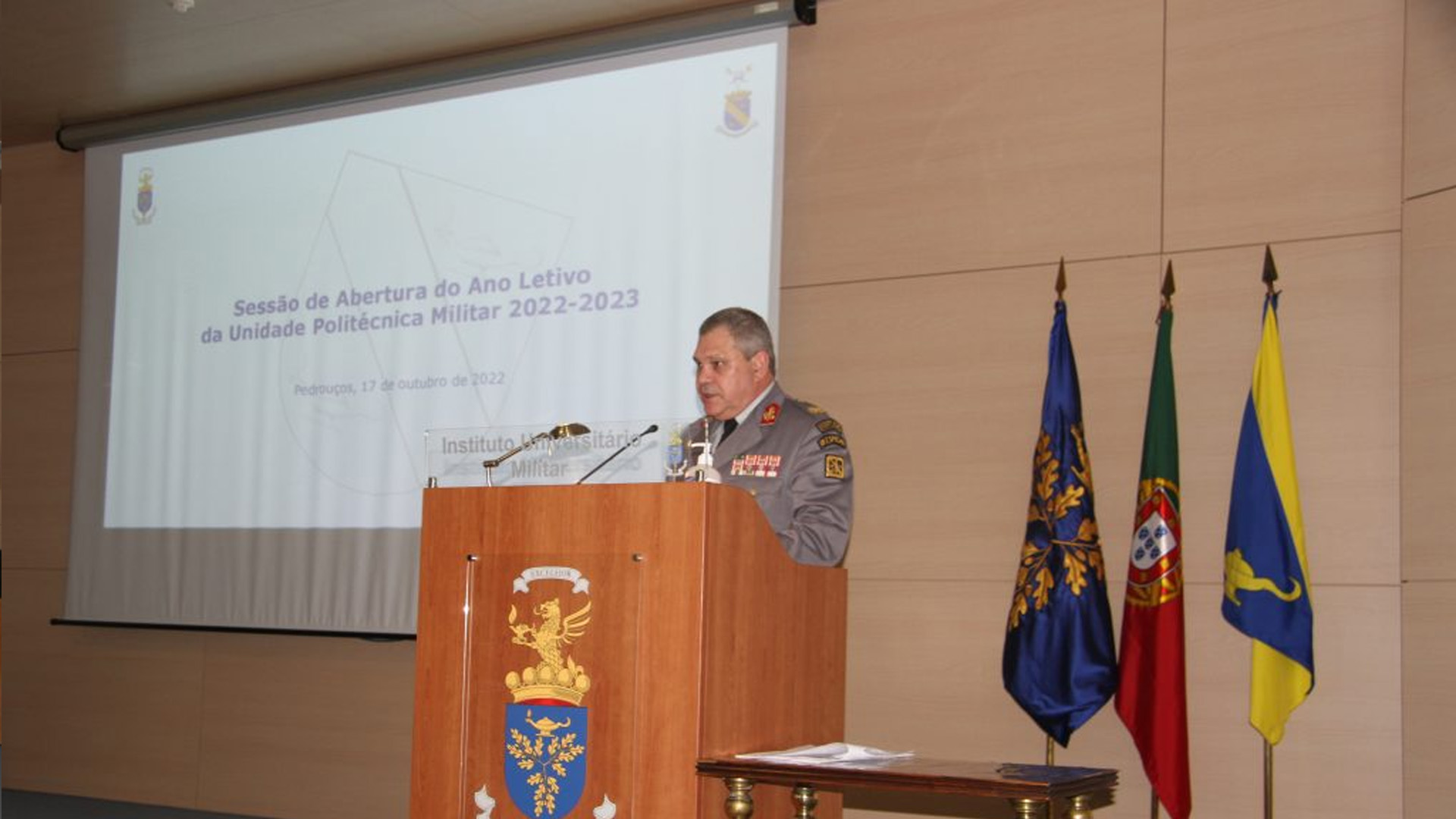 Em 17 de outubro deste ano, decorreu no Instituto Universitário Militar (IUM) a Sessão de Abertura do Ano Letivo da Unidade Politécnica Militar (UPM) 2022-2023, presidida pelo Excelentíssimo Comandante do IUM, Tenente General António Martins Pereira.