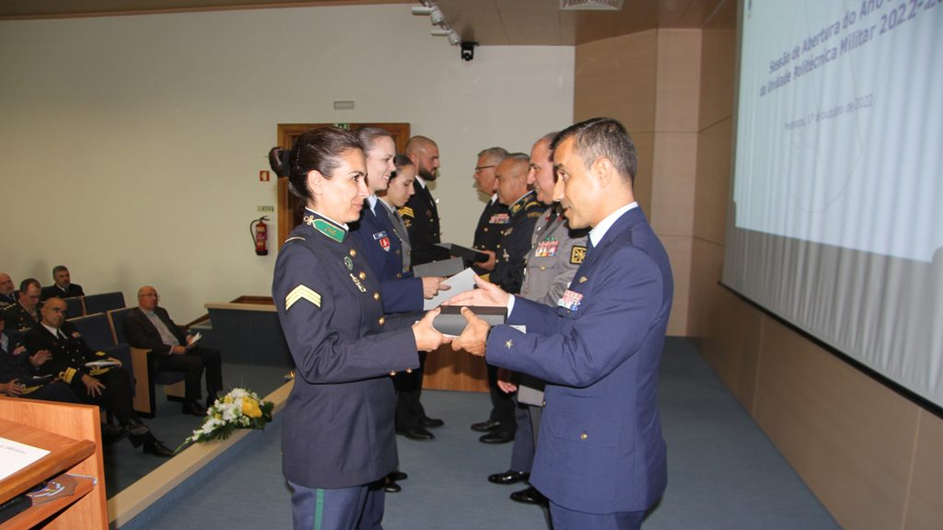 Este ato contou com a presença dos Comandantes do Pessoal da Marinha e do Exército e demais oficiais generais dos ramos das Forças Armadas e da Guarda Nacional Republicana (GNR), Sua Excelência Reverendíssima, o Bispo das Forças Armadas e das Forças de Segurança, os Comandantes das escolas e centros de formação onde o ensino politécnico é ministrado, entre outras entidades civis e militares, que presencialmente ou por videoconferência, assistiram ao evento.