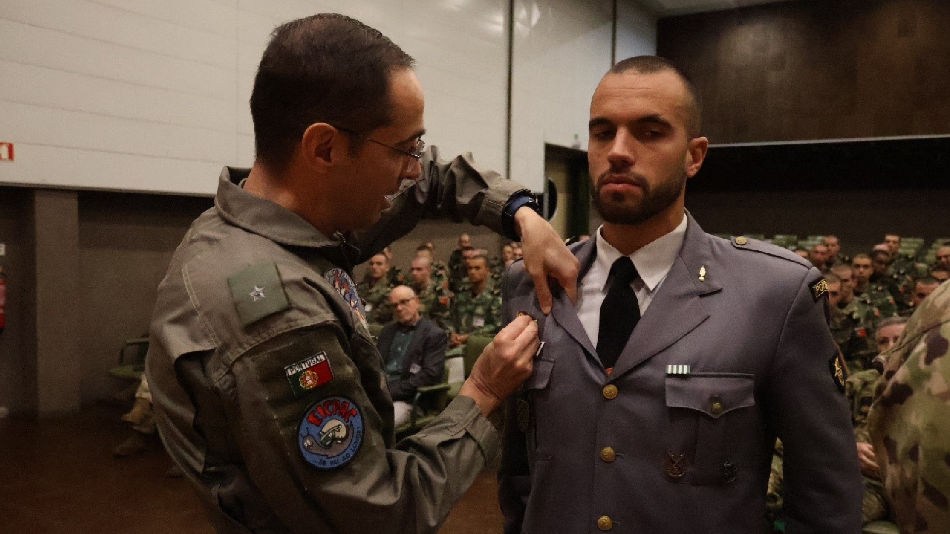 Esta visita incluiu também uma cerimónia singela, mas plena de emoção e significado referente à imposição do distintivo de docente a dois militares da ESE.