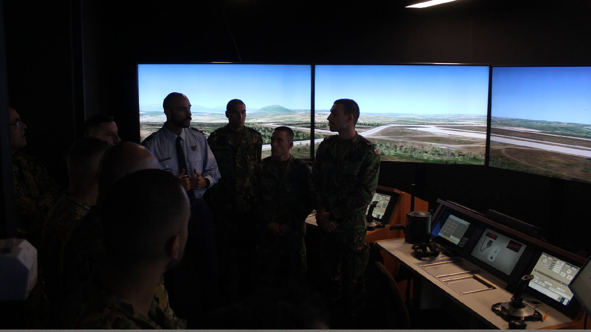 Na Torre de Controlo, apresentou-se o simulador e os vários detalhes de aprendizagem dos alunos dos cursos de controlo de tráfego aéreo, bem como as simulações meteorológicas e também de incidentes na pista.